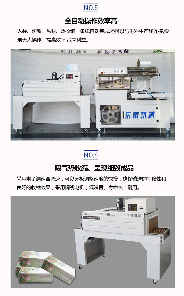 自動(dòng)塑料膜熱收縮包裝機(jī)結(jié)構(gòu)緊湊占地面積小,非常適合配套自動(dòng)包裝流水線完成產(chǎn)品的自動(dòng)無人化包裝,適合于單個(gè)物品包裝或有底托物品包裝。自動(dòng)送膜打孔裝置和手動(dòng)調(diào)節(jié)的導(dǎo)膜系統(tǒng)以及手動(dòng)調(diào)節(jié)的進(jìn)料輸送平臺(tái),可適于不同寬度和高度的產(chǎn)品,實(shí)現(xiàn)一臺(tái)機(jī)器滿足各種尺寸的包裝物品。
